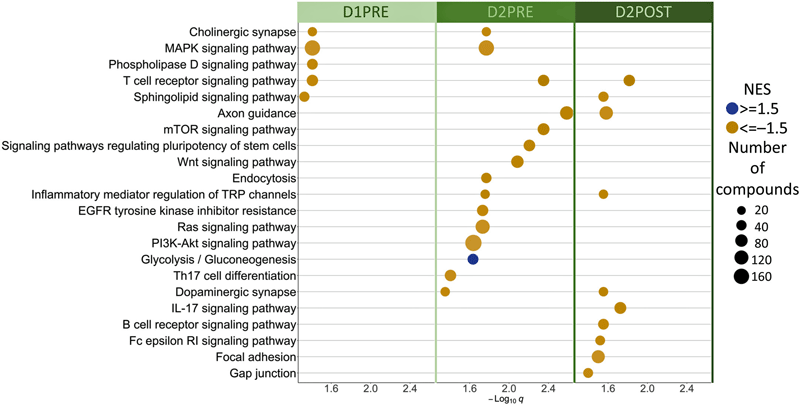 De auteurs rapporteerden dat de GSEA “overtuigende verschillen in intracellulaire signalering in ME/cvs-gevallen” aan het licht bracht, met name in “T-celreceptorsignalering” en andere mechanismen van cel-celcommunicatie. Dit was de enige bij aanvang ontregelde route, direct na de inspanning en vervolgens 24 uur na de inspanning.
