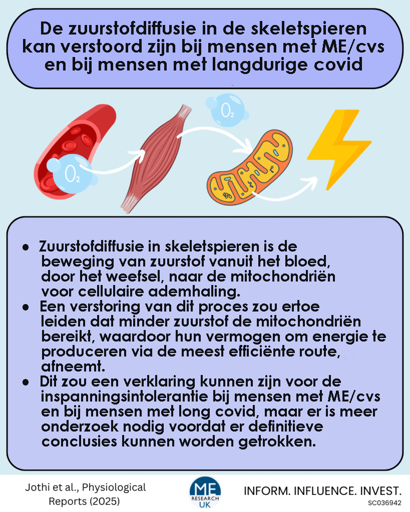 Een kleinschalige verkennende studie heeft aangetoond dat de zuurstofdiffusie in de skeletspieren – een belangrijk proces in het lichaam dat ervoor zorgt dat zuurstof naar de spiercellen wordt getransporteerd voor energieproductie – mogelijk verstoord is bij zowel mensen met ME/cvs als bij mensen met langdurige covid.