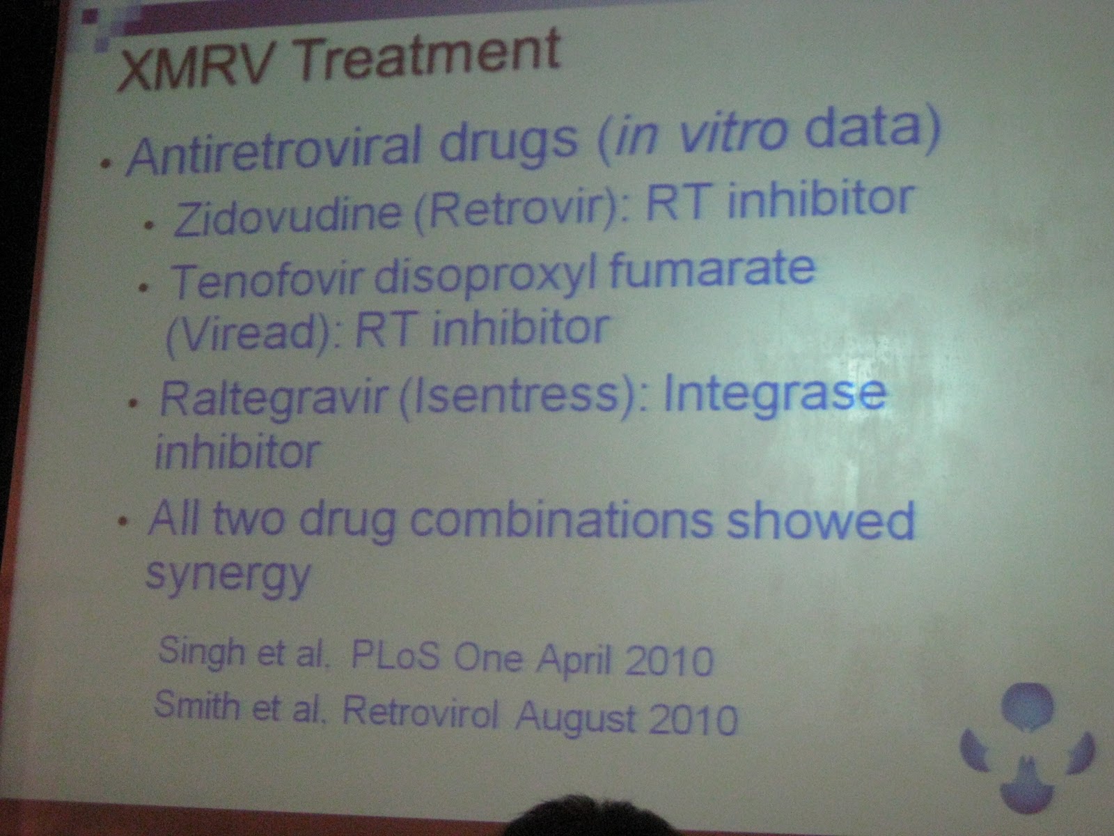 De eerste dia was een herinnering aan de studie die in vitro uitgevoerd werd door Singh et al. Drie antiretroviralen bleken veelbelovend onder de 45 samenstellingen en 28 goedgekeurde geneesmiddelen voor gebruik bij mensen. Deze drie zijn Zidovidune (ook bekend als AZT, Retrovir ®), Tenofovir (Viread ®) en Raltegravir (Isentress ®). De studie toonde dat alle 2-geneesmiddelen-combinaties doeltreffend bleken tegen XMRV in vitro.